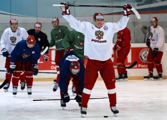 Members of the Russian national ice hockey team during the team's open training session held on the eve of Round 1 of the 2014-15 Euro Hockey Tour's Karjala Cup at the Novogorsk training center in Khimki.03.11.2014#2521933
