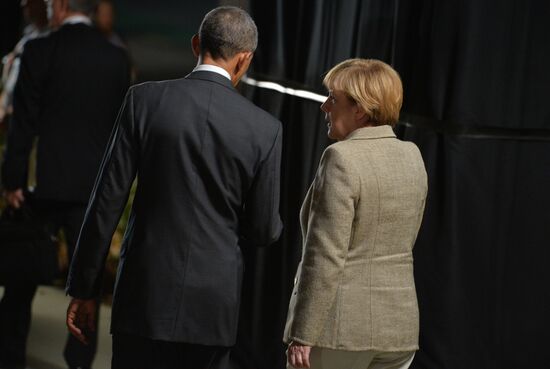 US President Barack Obama and German Chancellor Angela Merkel at the 2014 G-20 summit in Brisbane, Australia, November 15, 2014.15.11.2014#2528001