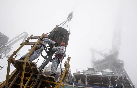 Workers at the construction site of the East Tower of the Federation Tower skyscraper in Moscow.09.12.2014#2541046