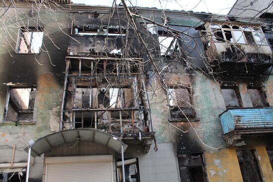 A motorway bridge over a railway destroyed in the shelling near the town of Debaltseve.25.02.2015#2579428