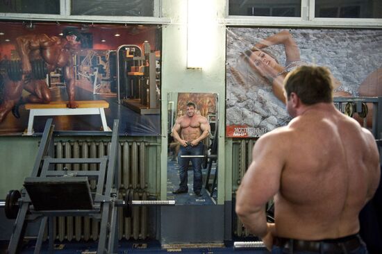 Alexei Netesanov from Penza (left), winner of the international bodybuilding competition in England, trains in the gym.12.11.2009#504120