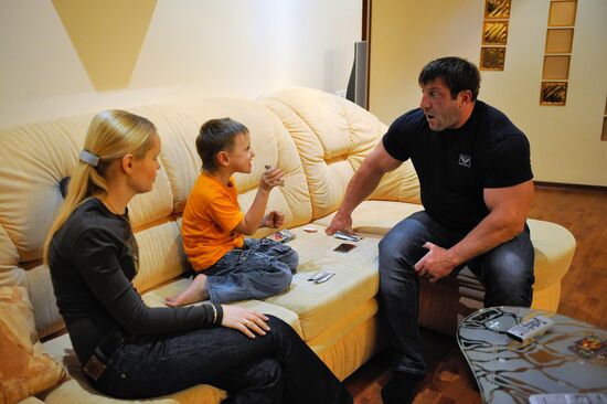 Alexei Netesanov, winner of the Mister Universe 2009 competition, at home with son Maksim.12.11.2009#504144