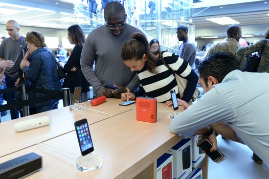 New York City. A customer chooses a case for an iPhone 6s Plus Smartphone at the Apple store on 5th Avenue.28.09.2015#2708127
