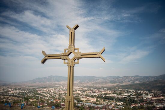 A cross on a mountain, overlooking the city of Stepanakert, the self-proclaimed Republic of Nagorno-Karabakh.07.10.2015#2713875