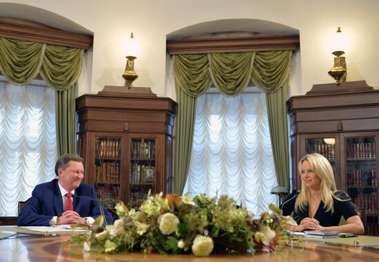Pamela Anderson, Consultative Council member, International Fund of Animal Welfare, meeting in the Kremlin with the presidential office chief Sergei Ivanov.07.12.2015#2753313