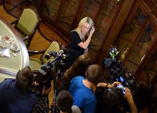 Pamela Anderson, Consultative Council member, International Fund of Animal Welfare, facing journalists on completion of her Kremlin meeting with the presidential office chief Sergei Ivanov.07.12.2015#2753307