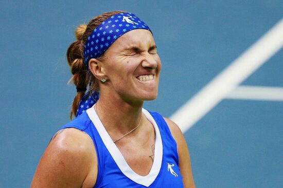 Svetlana Kuznetsova (Russia) in the women's singles match against Richel Hogenkamp (the Netherlands) during the Fed Cup quarterfinal between the national teams of Russia and the Netherlands.06.02.2016#2786438