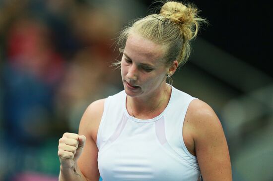 Richel Hogenkamp (the Netherlands) in the women's singles match against Svetlana Kuznetsova (Russia) during the Fed Cup quarterfinal between the national teams of Russia and the Netherlands.06.02.2016#2786453