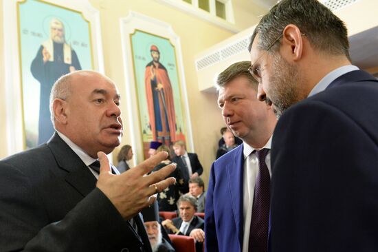 Mikhail Shvydkoi (left), the Russian president's representative for international cultural cooperation, attending the event dedicated to the 70th anniversary of the Moscow Patriarchate's Foreign Relations Department19.05.2016#2851378