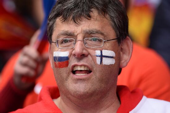 A hockey fan after the 2016 IIHF World Championship semifinal match between the Finnish and Russian national teams.21.05.2016#2853289