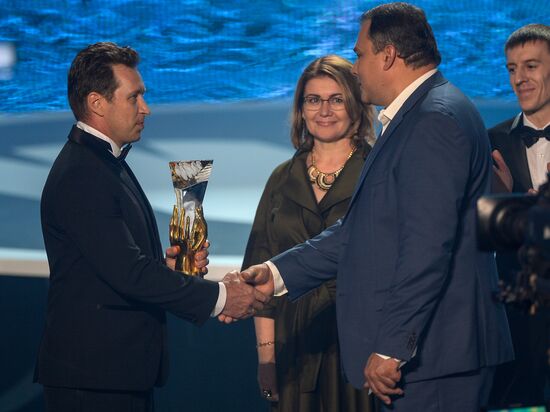 Oncology surgeon Andrei Ivannikov receives a special award from Channel One at the Vocation Medical Awards at the Soviet Army Theater in Moscow.16.06.2016#2873880