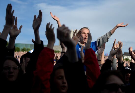 Fans of the Icelandic national team watch the broadcast of the 2016 UEFA European Championship quarterfinal match between France and Iceland.03.07.2016#2886285