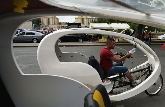 Paris, France. Center: The pyramid-shaped glass entrance to the Louvre, built to a design by architect Bèi Yùmíng.19.07.2016#2897032