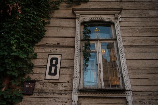 Visitors walk in the Krutitsy Metochion. From left: Metropolitan's palace and the Krutitsy cottage.04.08.2016#2904676