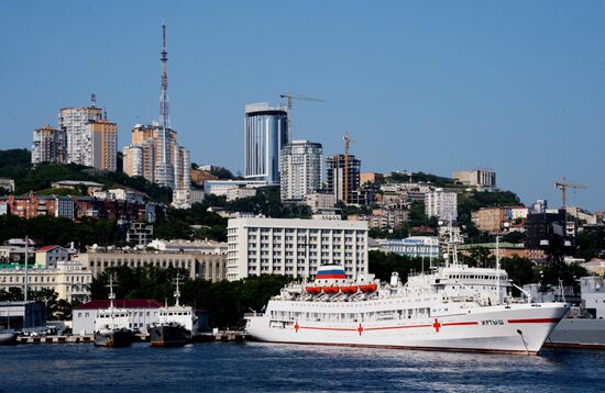 The Pacific Fleet's Irtysh hospital ship is seen near a pier in Zolotoi Rog Bay in Vladivostok.04.08.2016#2905981