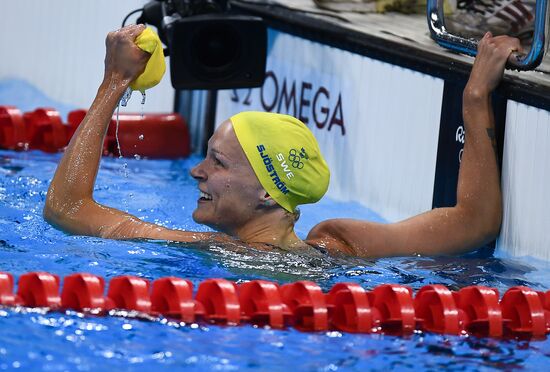 Sarah Sjostrom (Sweden) celebrates her victory in the women’s individual 100m butterfly event at the XXXI Summer Olympics.07.08.2016#2906793