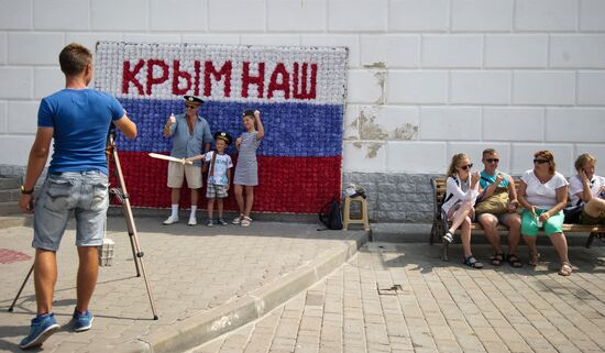 Visitors of Sevastopol taking photos on a city embankment during the "Complimentary Photo" patriotic campaign.25.08.2016#2923762