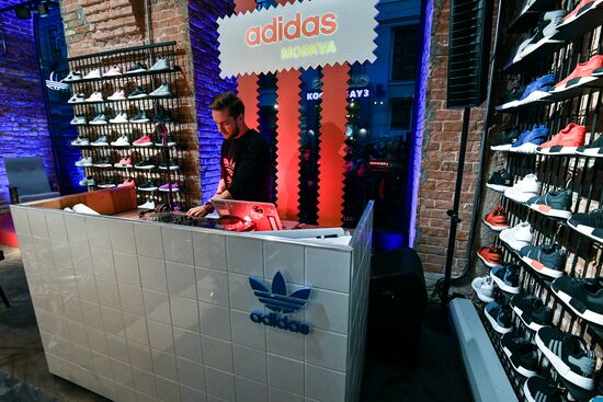 A DJ plays a set at the opening of the Adidas Originals flagship boutique on Kuznetsky Most in Moscow.23.09.2016#2943086