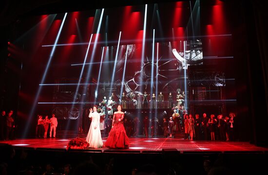 From left: Actresses Valeria Lanskaya, Olga Belyaeva and Ekaterina Guseva performing the role of Anna Karenina at the Moscow Operetta theater after the first run of the Anna Karenina musical.08.10.2016#2953080