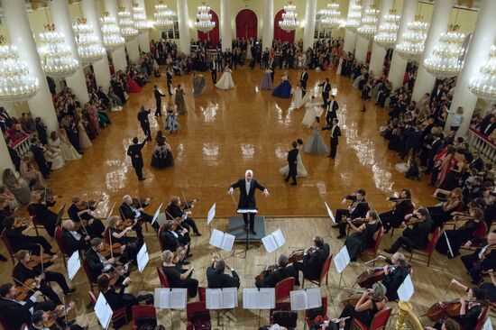 At the Debutante Ball hosted by the Tatler magazine in the Column Hall of the House of Unions. Center: Vladimir Spivakov, artistic director and chief conductor of the Russian National Philharmonic Orchestra and the Moscow Virtuosi State Chamber Orchestra.02.11.2016#2967092