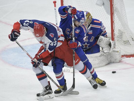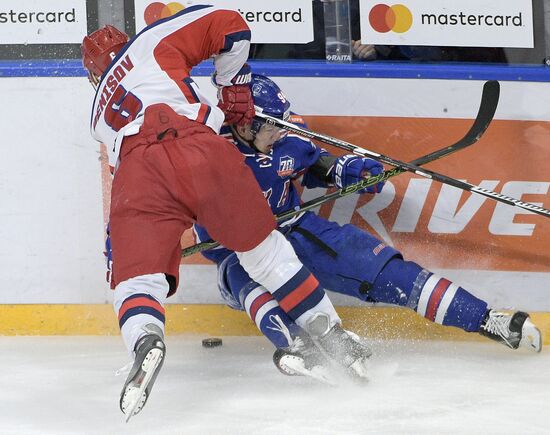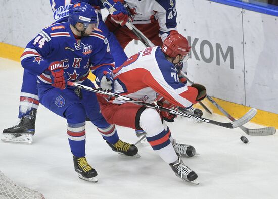 CSKA's player Ivan Telegin, right, at the Kontinental Hockey League regular championship match between HC SKA St. Petersburg and PHC CSKA Moscow.21.11.2016#2977677