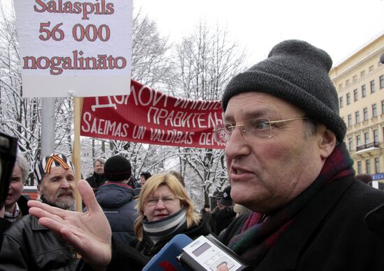 Efraim Zuroff, head of the Simon Wiesenthal Center in Israel, near the Freedom Monument in central Riga with the participants of the "Anti-Nazi meeting" against celebrating the anniversary of the Waffen SS legion.16.03.2010#599697