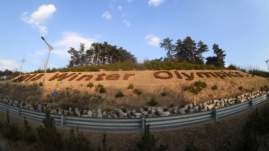 A writing dedicated to the 2018 Winter Olympic Games on the slope of a hill in Gangneung, South Korea.13.02.2017#3028647