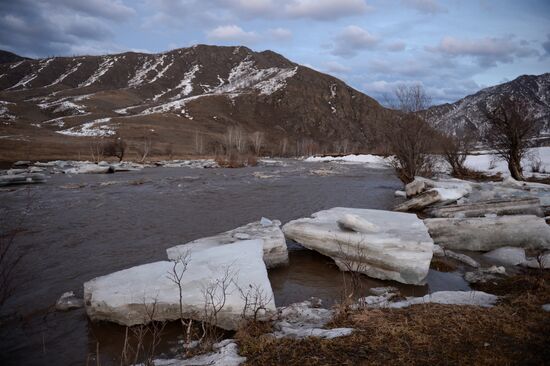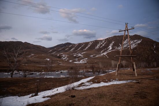 The territory of the eco hotel "Berendeyevka" in the village of Kamlak, Republic of Altai.31.03.2017#3065482
