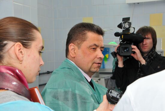 From left: Lyube front man Nikolai Rastorguyev with Chief of Medicine of a children's hospital Igor Untevsky at the opening of a dyalisis therapy center in Stavropol.25.03.2010#607672