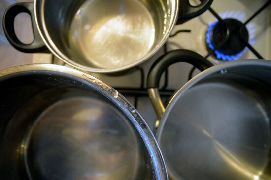 Boiling water on the stove during the seasonal shutdown of hot water in Vladivostok.12.05.2017#3097196