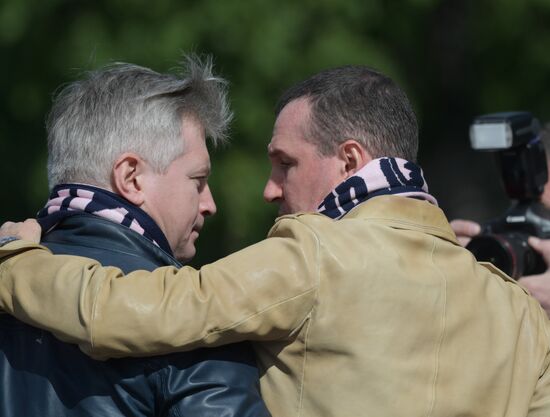 Russian Sports Minister Pavel Kolobkov, left, State Duma Deputy for International Affairs Svetlana Zhurova and hockey player Evgeny Ovechkin during events of the Cherry Orchard Arts Festival at Luzhniki Big Sports Arena.28.05.2017#3113637