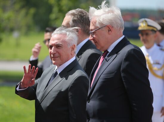 President of the Federative Republic of Brazil Michel Temer, left, who arrives for a two-day official visit to Russia, and Russian Deputy Foreign Minister Sergei Ryabkov during the welcoming ceremony at Vnukovo 2 airport.20.06.2017#3134615