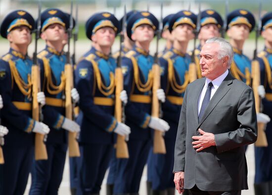 Brazilian President Michel Temer arrives for a two-day official visit to Russia. Greeting ceremony at Vnukovo-2 Airport.20.06.2017#3134566