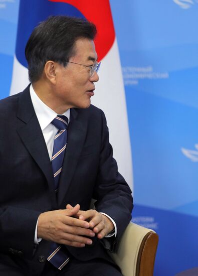 September 6, 2017. President of South Korea Moon Jae-in during a meeting with Russian President Vladimir Putin as part of the 3rd Eastern Economic Forum hosted by the Far Eastern Federal University, Russky Island.06.09.2017#3185885