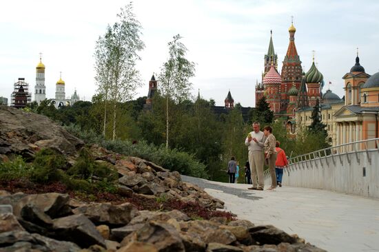 Visitors enjoying the Kremlin view from Moscow's Zaryadye Nature and Landscape Park.11.09.2017#3191429