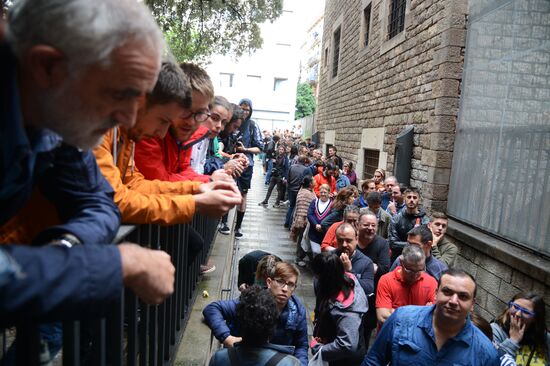 People expect for the opening of a polling station in Barcelona for a further voting at a referendum on Catalonia's independence from Spain.01.10.2017#3203460