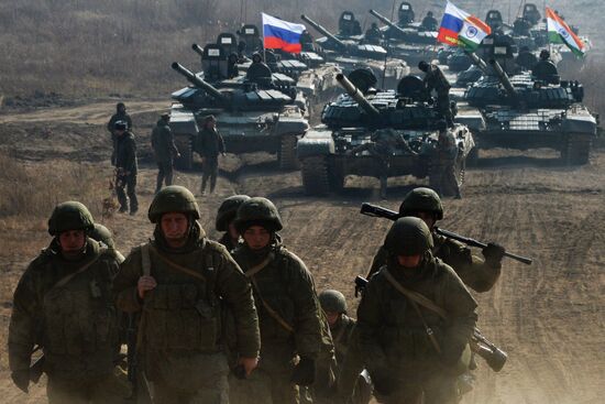 Servicemen of Russian and Indian Armed Forces at the Russian-Indian joint military exercises Indra-2017 on Sergeevsky range in Primorsky Territory.27.10.2017#3223505