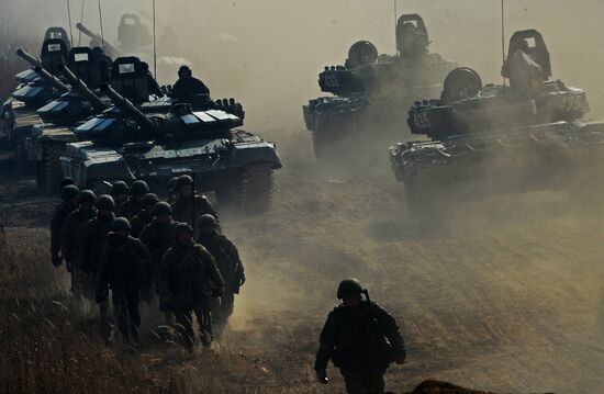T-72 tanks at the Russian-Indian joint military exercises Indra-2017 on Sergeevsky range in Primorsky Territory.27.10.2017#3223487