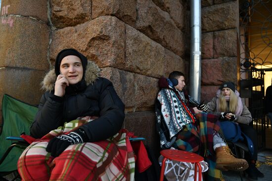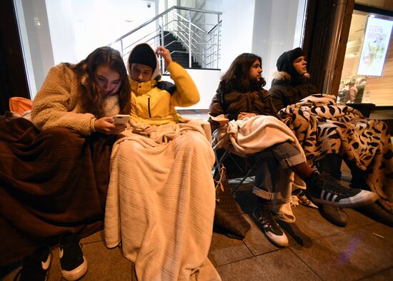 Buyers waiting for a start of sale of iPhone X smartphones stand in a queue by the re:Store outlet in Tverskaya Street, Moscow. iPhone X smartphones will go on sale in Russia on November 3.02.11.2017#3226727