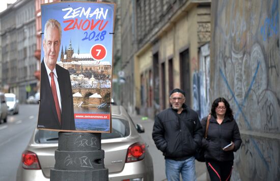 A campaign poster of the incumbent head of state, presidential candidate Milos Zeman on a Prague street. The Czech Republic will hold the first round of direct presidential elections on Friday, January 12.11.01.2018#3272288