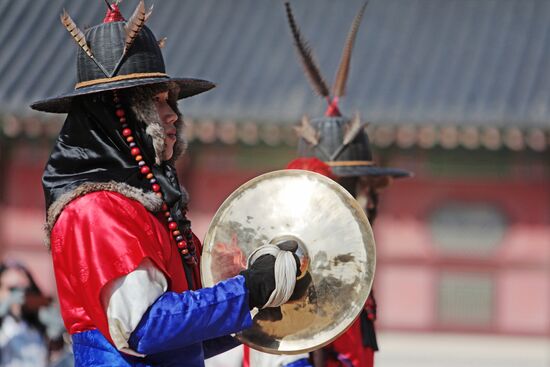 Tourists watch the changing of the guard ceremony near Gyeongbokgung Palace in Seoul.07.02.2018#3290334