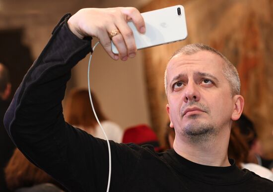 Caricaturist and author Andrei Bilzho at the anniversary Pioneer Readings at the State Central Museum of Contemporary History of Russia.12.02.2018#3295312