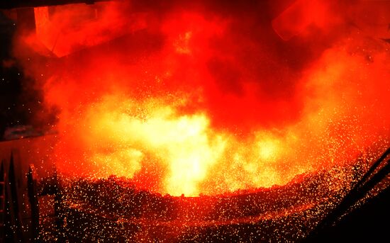 A view of the Vyksa Steel Works, Nizhny Novgorod region. United Metallurgical Company, complex, fire, furnace, company, coal, steel worker, open-hearth, omk, landscape, horizontal, vat, casting, founding, flame01.03.2018#3312859
