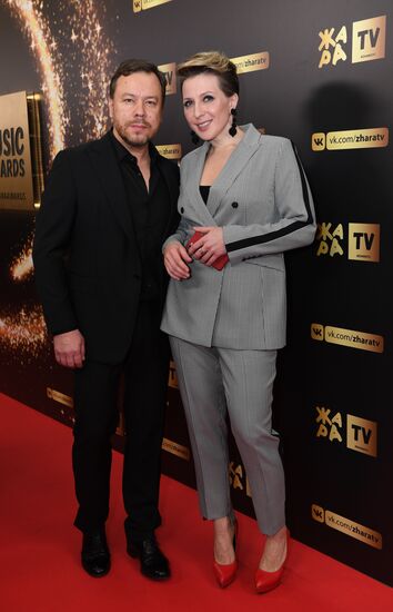 Singer Yulia Parshuta and showman Alexander Revva at the Zhara Music Awards ceremony at the Crocus City Hall concert venue.04.03.2018#3314234