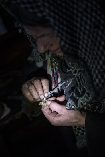 Agafia Lykova, a hermitess from the old Believer family, during a prayer. The Lykov family of Old Believers went to the Sayan mountains taiga in the later 1930s, resided in isolation and were discovered by Soviet geologists in 1978. Agafia Lykova is currently the only survivor of the Lykovs.20.02.2018#3314208