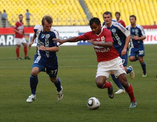 Spartak Moscow's forward Ari, foreground, against Sibir Novosibirsk's defender Denis Bukhryakov in the Russian Football Premier League's round 11 rescheduled match.21.07.2010#724819