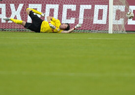 Spartak's goalie Sergei Pesyakov missing a goal during the Russian Football Premier League's round 11 rescheduled match.21.07.2010#724960