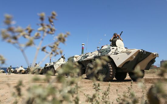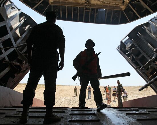Seaborne assault troops board the Yamal large landing craft in the Bay of Sevastopol. Black Sea Fleet ships rehearse Russian Navy Day celebration.24.07.2010#726751
