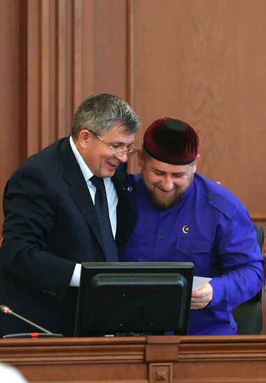 Ramzan Kadyrov (left) seen attending the Chechen parliamentary session that was unanimous in its decision to rename the presidential office as Head of the Chechen Republic. Right: Chechen Vice-Prime Minister Magomed Daudov.02.09.2010#751489