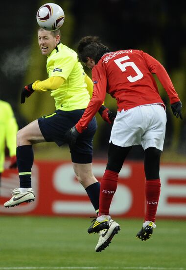 Basel defender Scott Chipperfield and Spartak defender Alexander Sheshukov at the UEFA Europa League Round 1/16 match between Spartak (Moscow, Russia) and Basel (Basel, Switzerland) held at Luzhniki Stadium.24.02.2011#868385